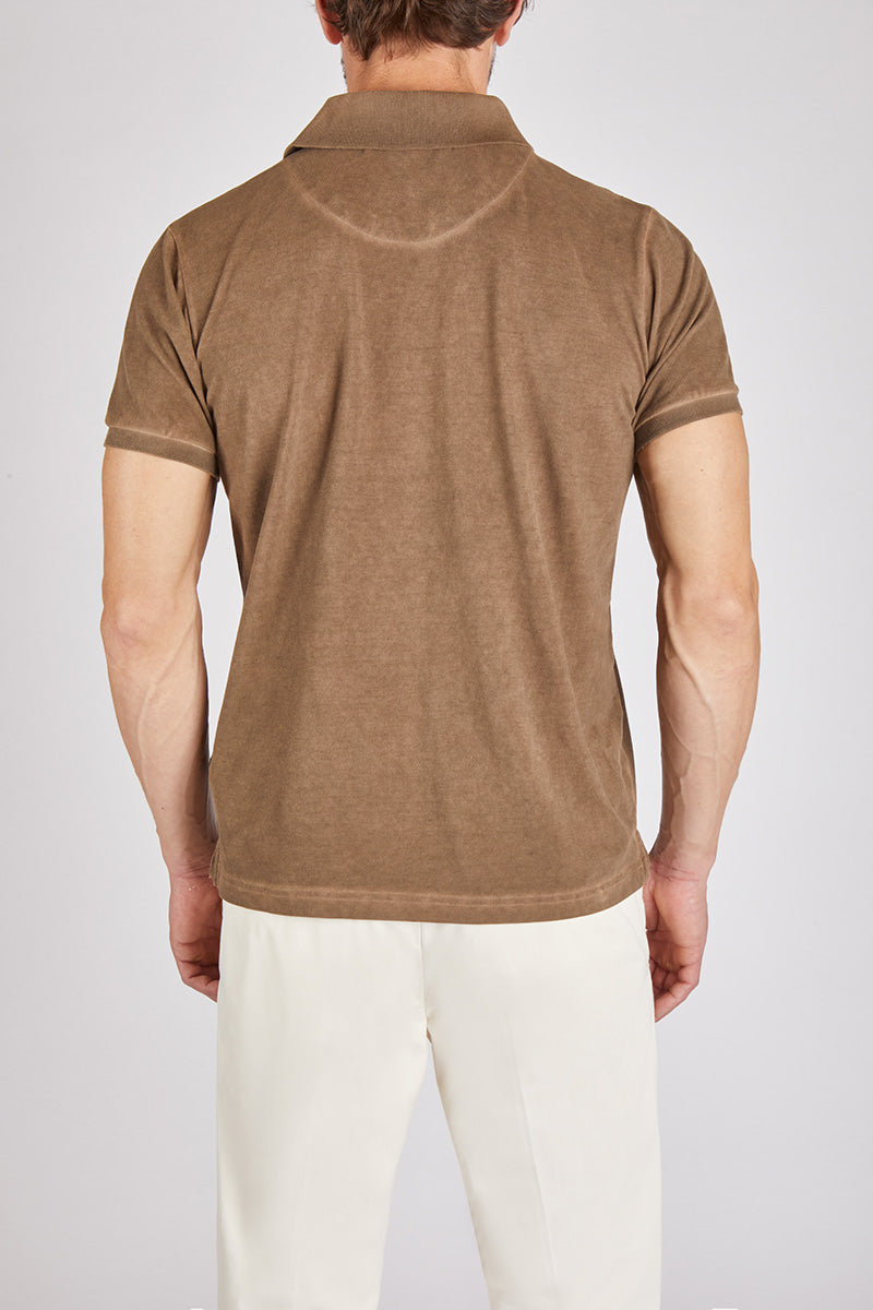 Polo in piquet a manica corta, regular fit, trattamento effetto used. Altezza modello 187cm, taglia indossata Large.